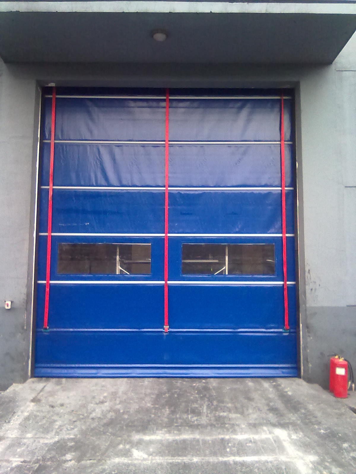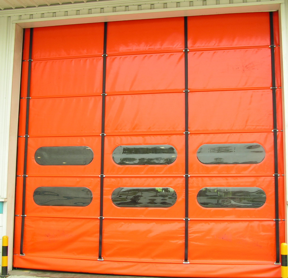 快速堆积门门帘采用比利时希运进口 0.8mm 厚的内夹网状玻璃纤维的 PCV 涂层布,门帘可以根据客户要求添加透明视窗,能够满足客户多方面的要求。