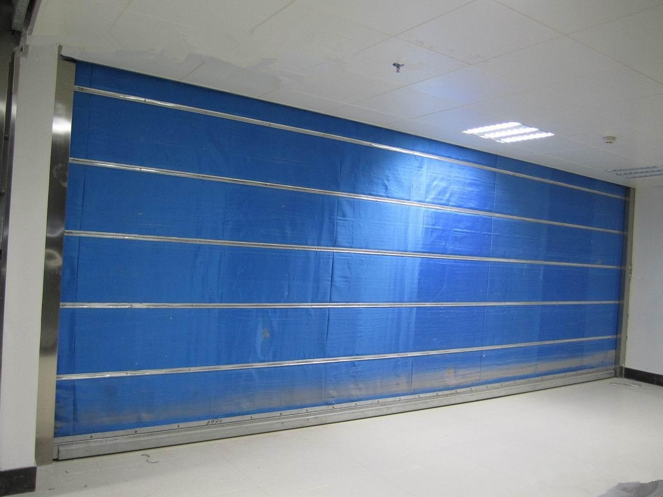 3、卷帘门安装好后,安装吊顶,吊顶边缘应离帘板50MM,以免磨擦;