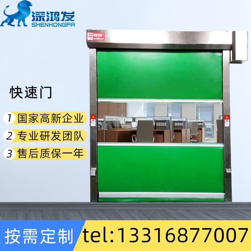 快速门,也叫自动卷帘门,是指每秒运行速度超过0.6米的门,是快速升降的无障碍隔离门,主要作用是起快速隔离的作用然后确保车间空气质量无尘等级。具有保温、保冷、防虫、防风、防尘、隔音、防火、防异味、采光等多项功能,并广泛用于食物、化学、纺织、电子、超市、冷冻、物流、仓储等多种场所,可极高的满足高性能物流及洁净场所,而且节省能源,高速主动封闭,提高作业功率,创造更佳的作业环境等长处。